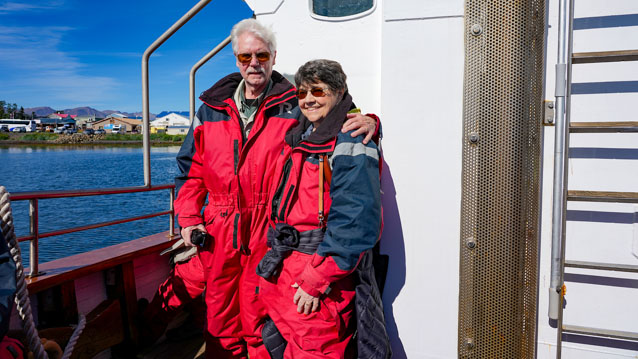 John and Virginia on Hauganes Whale Watching Tour off the shore of Eyjafjorour, Iceland's longest fjord