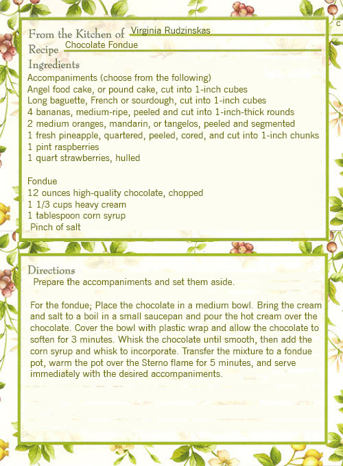 The chocolate fondue stays true to the flavor of the unmelted chocolate; using a chocolate you like straight from the package is a good idea. Milk chocolate will produce a mild and sweet fondue, semisweet chocolate will bring a deeper and more bitter flavor to the fondue, and bittersweet chocolate will present a pronounced bitter and even slightly acidic flavor. If you’d like just a touch of bitterness in the fondue, you may combine milk and semisweet or bittersweet chocolates. Plan for about 3/4 cup bread, cake, or fruit per person. The fruit may be prepared up to 4 hours and the bread and cake up to 1 hour ahead of time. You will need a real fondue pot (with heat source) to keep the chocolate mixture warm and fluid.