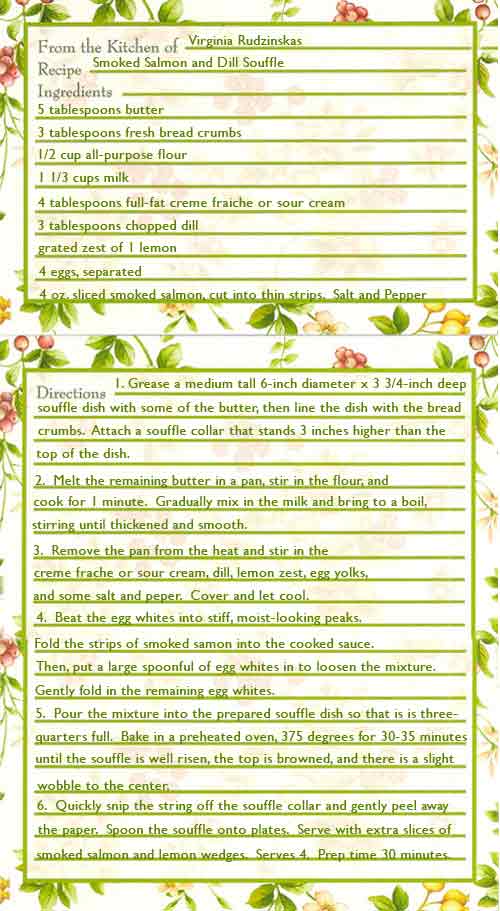 This rich Smoked Salmon and Dill souffle makes a great lunch or dinner dish.